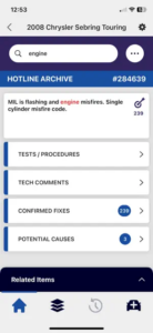 Search Direct-Hit’s over 3 million technician submitted, verified, and confirmed fixes by vehicle, symptom, or OBD II code to get right to the fix you need.